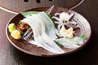 鮮度抜群が自慢の鮮魚は目利きが毎朝厳選して仕入れております。旬の魚はもちろん希少な魚を全国から。こだわりの鮮魚をお造りを始め、煮物、焼き物で味わっていただけます。新鮮でなければ味わえない魚本来の甘みや食感をお愉しみ下さい。