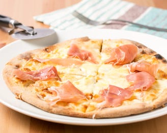 ピッツァの本場、イタリアのナポリを代表するピッツァといえばマルゲリータ。ナポリ風のもっちりとしたピザ生地に、トマトソース、モッツァレラチーズ、バジルのみの具材で仕上げるシンプルなレシピ。赤(トマト)、白(チーズ)、緑(バジル)の3色は、イタリア国旗を象徴しているとの説も。