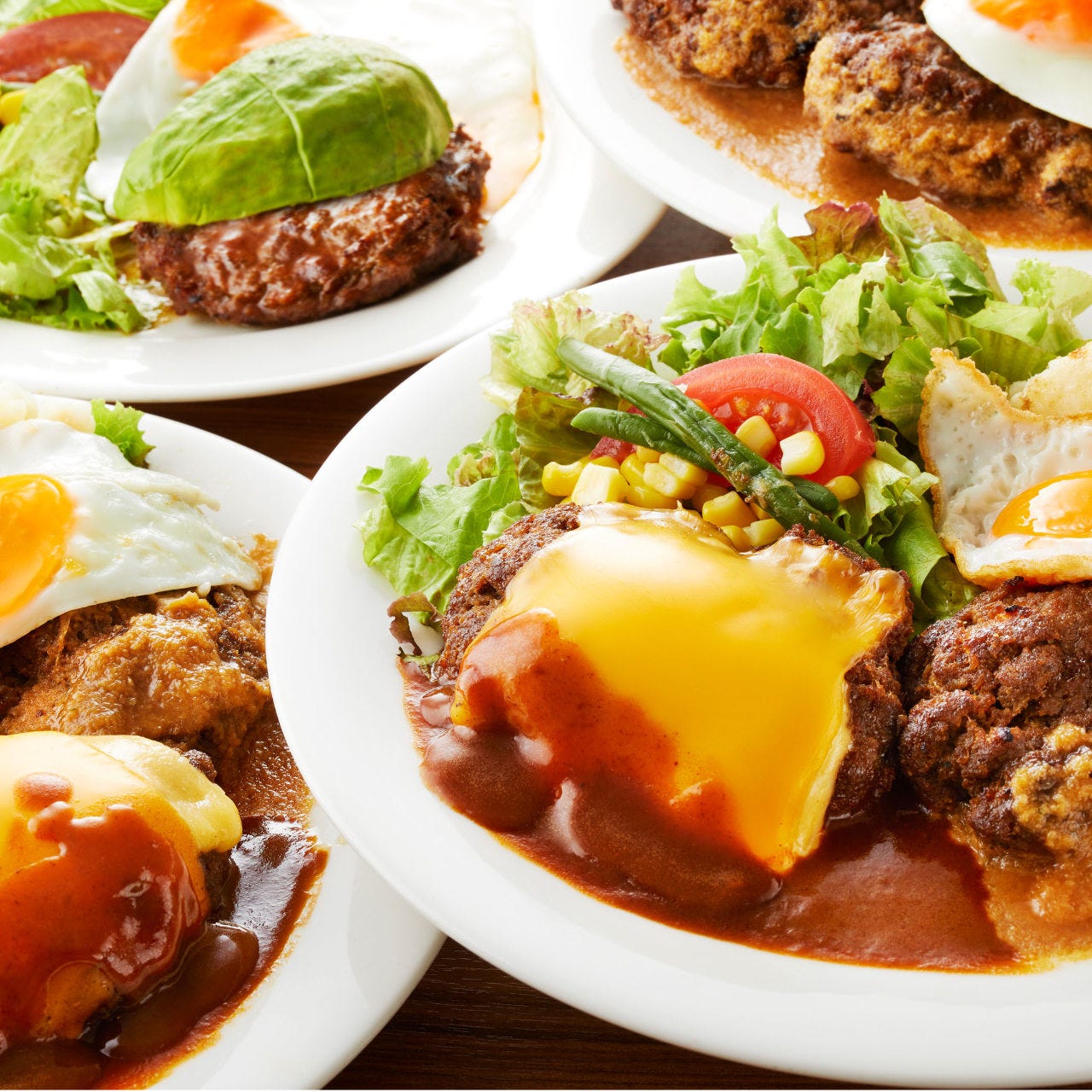 ドイツの都市ハンブルグが発祥の、ビーフ100%ハンバーグ。日本では牛豚の合挽肉を使うのが一般的だが、レストランなどでは豚肉を一切混ぜないその名の通り「ビーフ100%」を看板に掲げる店も多い。豚肉にはない高級感や牛本来のしっかりした旨味はもちろんのこと、鉄分が多く独特のコクが味わえるのも魅力。