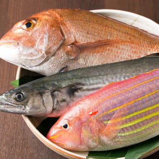 鹿児島県の朝採れ鮮魚を中心に旬の鮮魚はお造り、焼き、煮付けなどお客様のお好みの調理法でご提供いたします。身がしまって弾力がある白身のこしょうだい。上品な味わいの白鯛など定番以外に珍しい魚介も入荷がございます。※仕入れによって魚種は変更がありますのでご予約時にお問合せください。