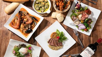 『迷ったらまずはコレ!』というほど多くの方から人気の「パルマ産生ハムと季節の前菜盛合わせ」は、一皿でいろんな前菜をお楽しみいただける自慢の一品♪当店では生ハムのカット方法にもこだわっており、手動のスライサーを使用。余分な熱をあたえずにカットできるため、生ハム本来の旨味を存分に味わっていただけます。