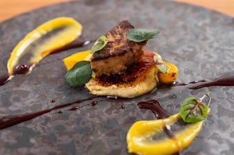 コンフィとは食材の風味をよくし、保存性を高めるフランス料理の調理法。肉の場合、油脂に素材を浸し、揚げ物にするよりも低い温度でゆっくりと加熱して調理する。そうすることによって肉を柔らかく仕上げることができ肉汁がぎゅっと詰まった状態でいただける。